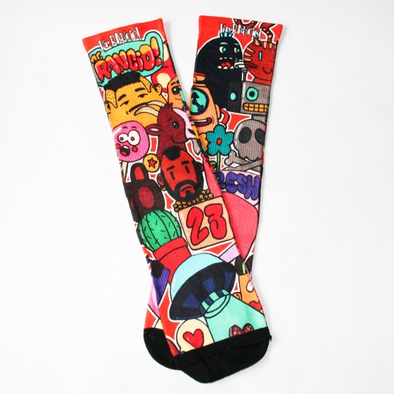 Todo el proceso de estampación lo hacemos nosotros mismos mediante la técnica de Sublimación. Ya sabes que nuestos diseños son todo ilustraciones dibujadas a mano por Mr.Rancio, que una vez terminadas, pasamos a digital para después poder transferirlas a los calcetines.