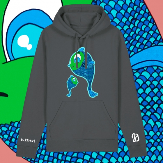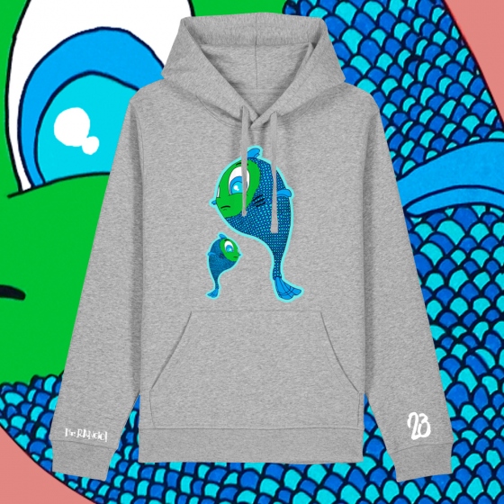 ¿Buscas añadir un toque de arte exclusivo a tu día a día? Descubre nuestros calcetines de pececitos en vibrantes tonos de azul y verde sobre un fondo rosa, creados a partir de una obra original dibujada a mano en directo por Mr.Rancio.