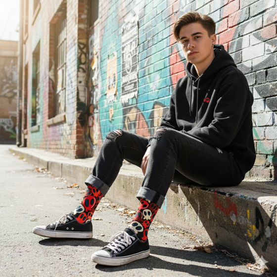 Estos calcetines no son sólo un accesorio, sino una pieza de arte wearable. Cada par está cuidadosamente diseñado y producido de principio a fin en nuestro taller. Desde el dibujo inicial hasta la estampación por sublimación y el packaging final, cada etapa del proceso pasa por nuestras manos, garantizando un control de calidad absoluto.